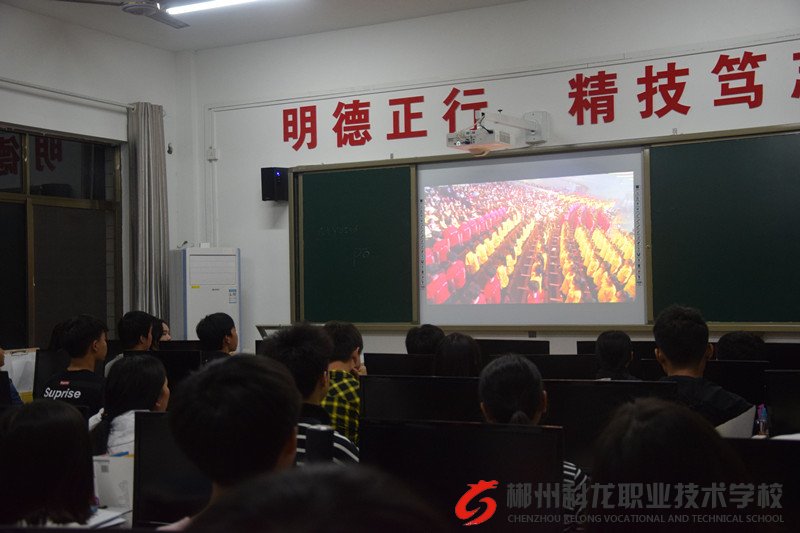 2019年5月6日晚,湖南中职教育向祖国七十华诞献礼暨“文明风采”活动展示展演(2019年湖南省职业教育宣传活动周)直播晚会在长沙举行,我校组织全体师生观看。