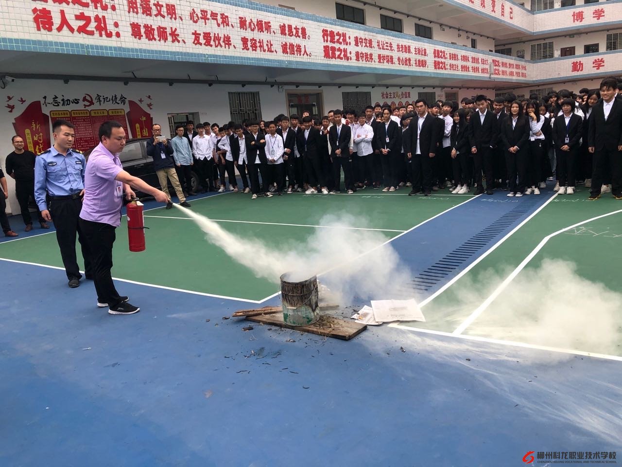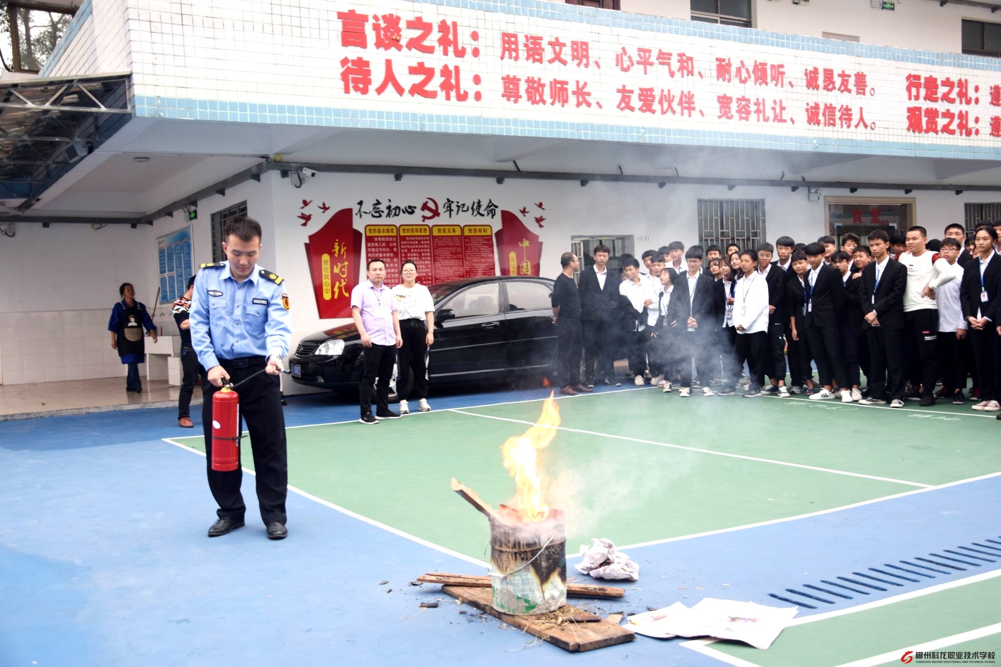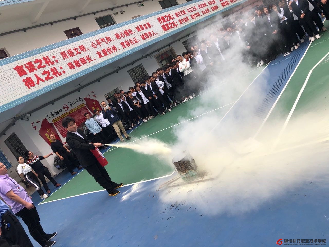 为进一步加强学校安全工作,提高全体师生的安全防范意识和识灾、自救、自护的能力,确保学校的教育教学顺利进行,争创平安和谐校园,特进行消防应急逃生演练,旨在培养师生掌握正确的逃生要领,以从容应对火灾事件的发生,最大限度的保护广大师生的人身安全。我校2019年10月22日举行消防应急演练。