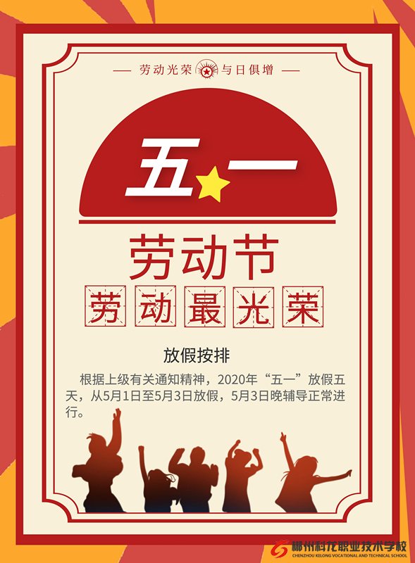 2020年“五一”放假3天,从5月1日至5月3日放假,5月3日晚辅导正常进行。为了使您的子女平平安安渡过一个愉快的假期,请你们在假期期间配合我校对该子女做好疫情防控、食品、溺水、消防、交通、法律法规等安全教育: