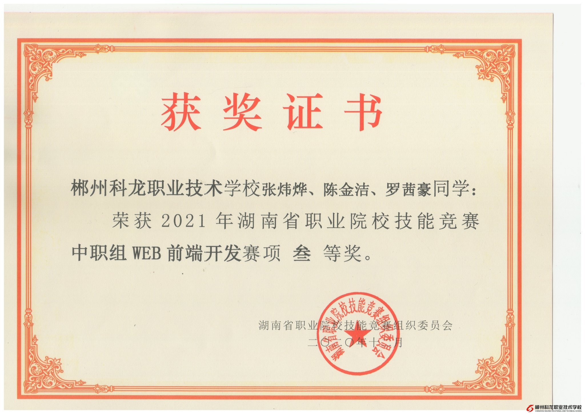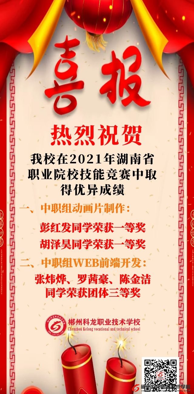 热烈祝贺我校在2021年湖南省职业院校技能竞赛中取得优异成绩(获得2个一等奖、1个三等奖)