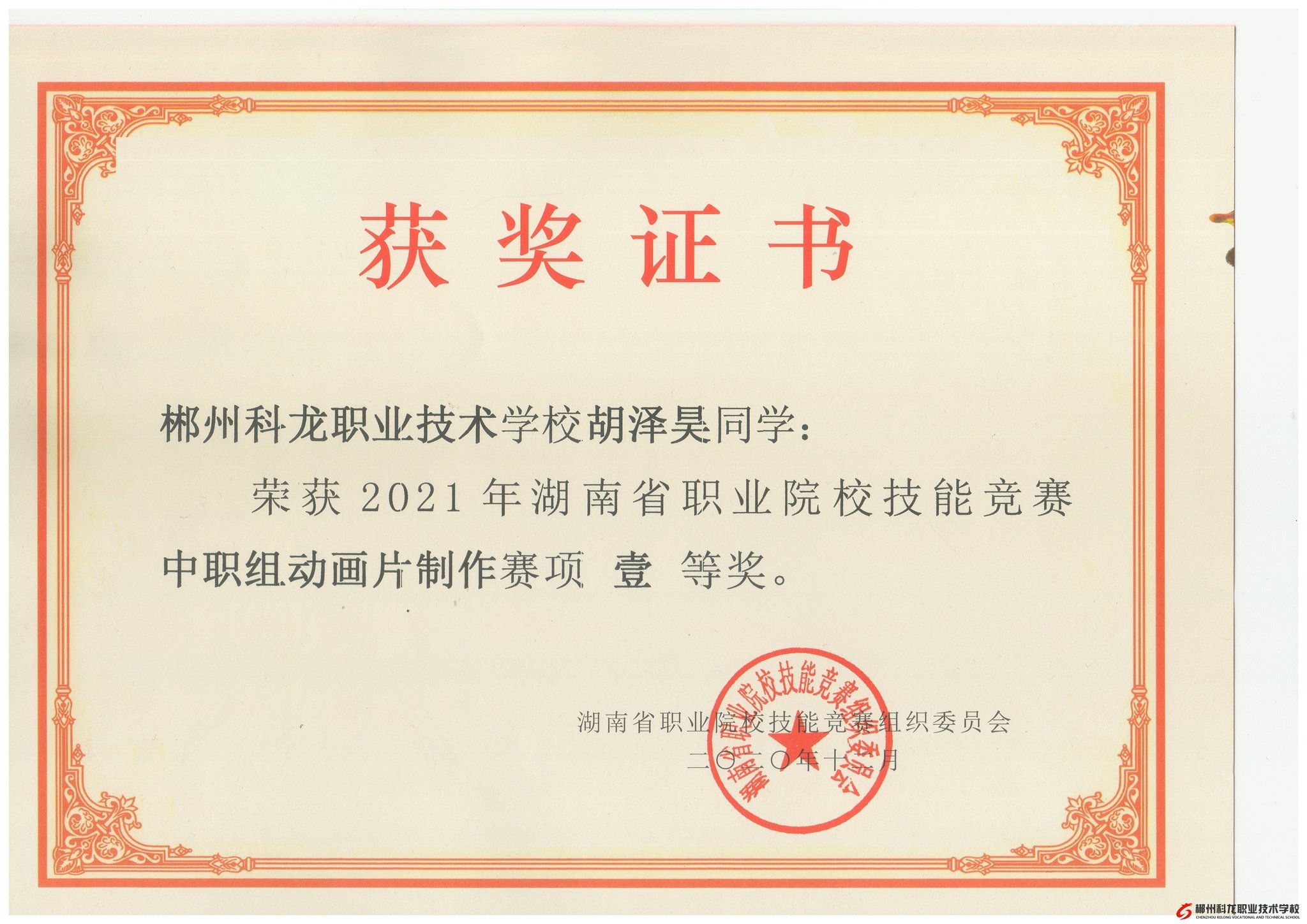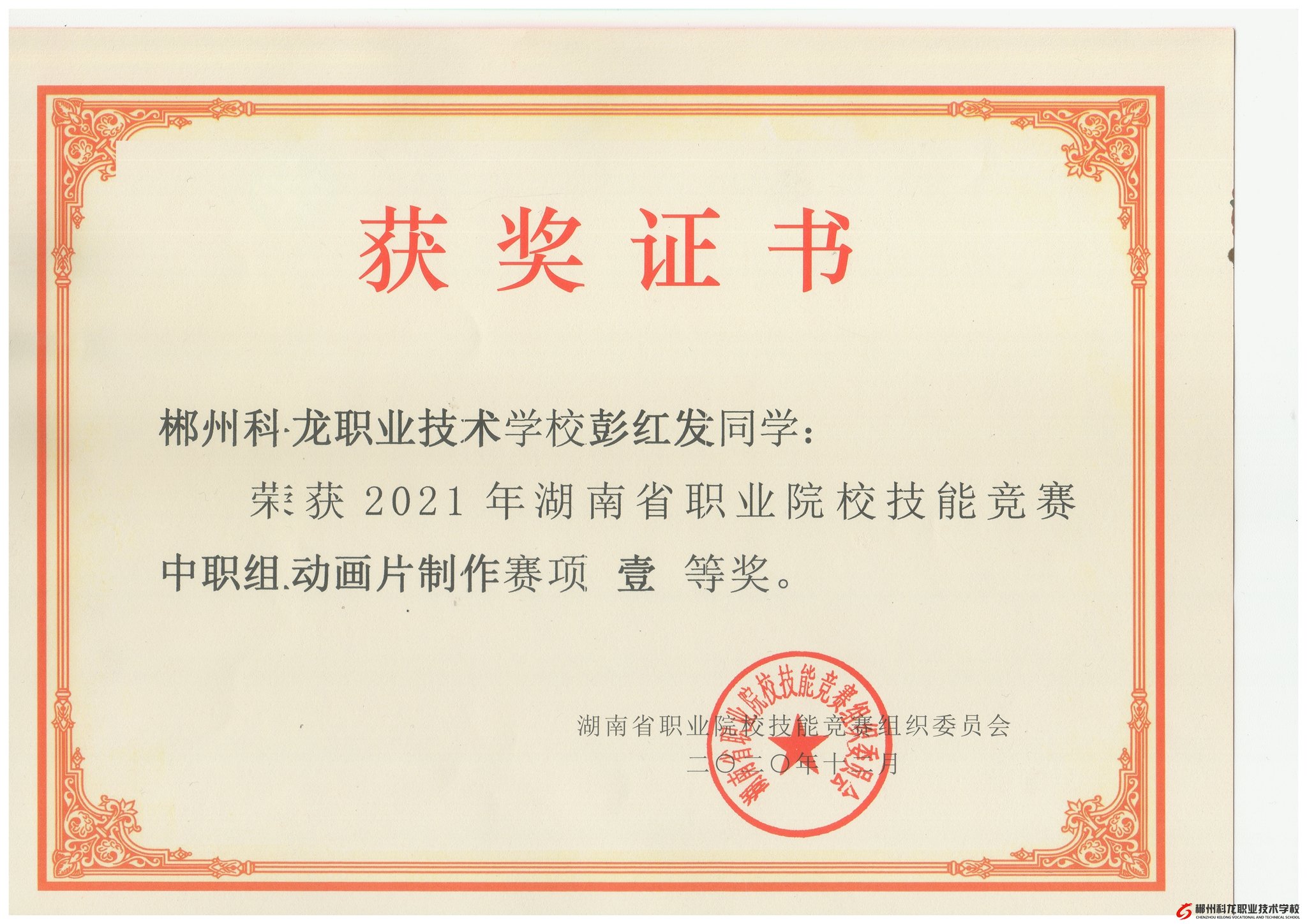由湖南省教育厅主办的2021年湖南省职业院校技能竞赛中职组“动画片制作、Web前端开发”大赛于2020年12月20日在湘潭市工贸中专闭幕。在此次比赛中,郴州科龙职业技术学校的学子们取得了优异的成绩,共5人参加比赛,其中彭红发和胡泽昊同学分别获得“动画片制作”一等奖;张炜烨、罗茜豪、陈金洁三位同学获得“Web前端开发”团体三等奖。特此祝贺!