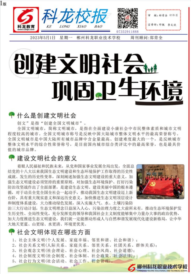 科龙校报《创建文明社会 巩固卫生环境》